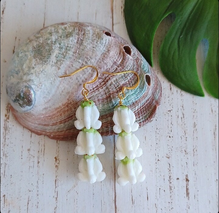 - Triple White Crown Flower Dangle Earrings